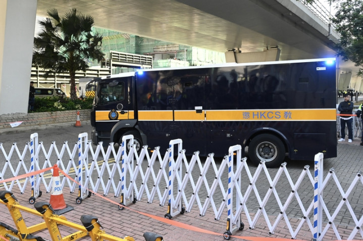 图为2021年2月1日,黎智英由惩教署人员押上囚车(资料图)。中新社记者李志华摄ICPhoto